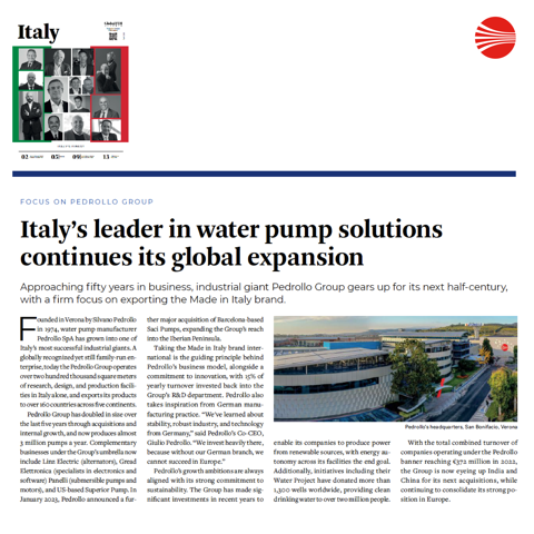 TIME celebrates the Italy of Mario Draghi and the actions which our country is accomplishing to promote economic growth. There is also Pedrollo Group among the companies mentioned by the international weekly journal in its investigation dedicated to the Italian economy. Available in printed format and online.